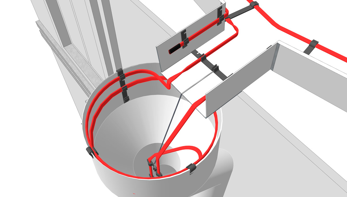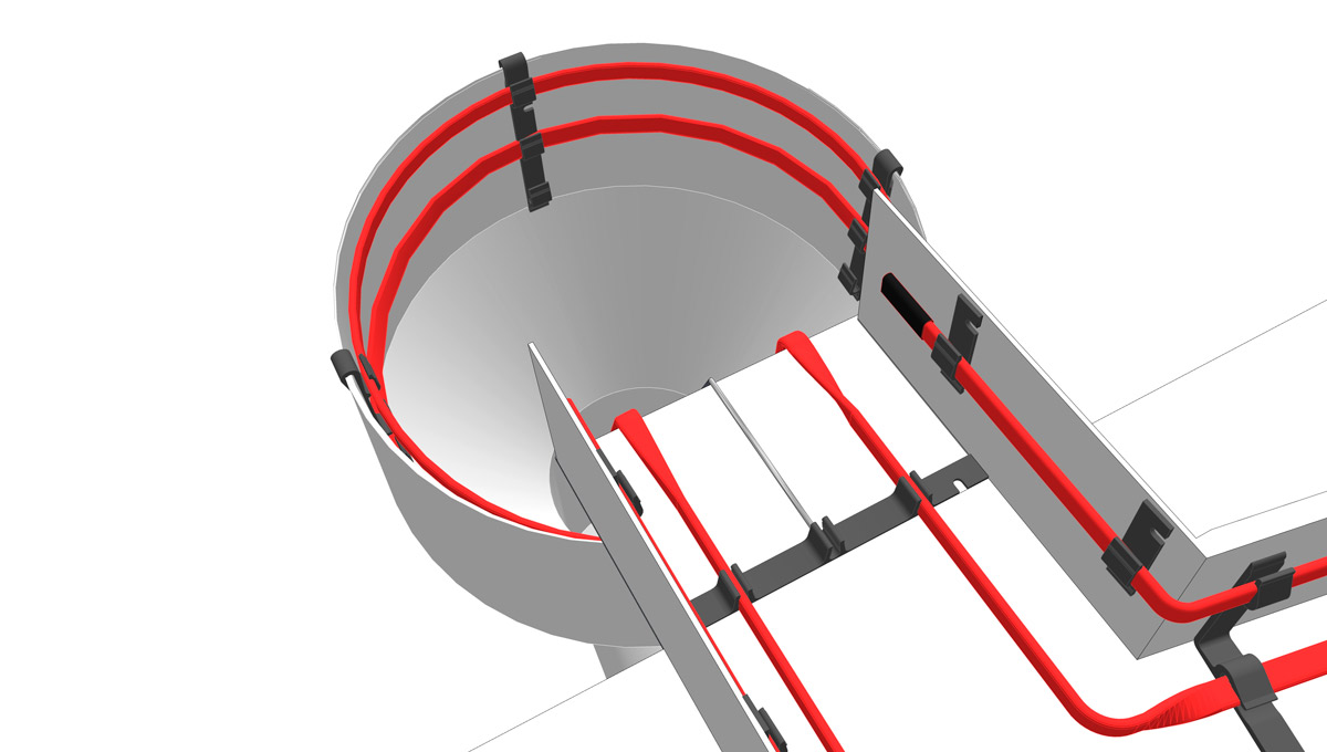 Крепежный зажим КМ/3Т применяется для крепление нагревательного кабеля в водоприемной воронке, на выходе кабеля из водосточной трубы. Зажим подходит для крепления большинства саморегулируемых и резистивных кабелей. Зажим имеет три проушины, а так же крюк, который позволяет фиксировать зажим на водоприемной воронке. Проушины зажима КМ/3Т позволяют закрепить спиралью и равномерно распределить в воронке нагревательный кабель.