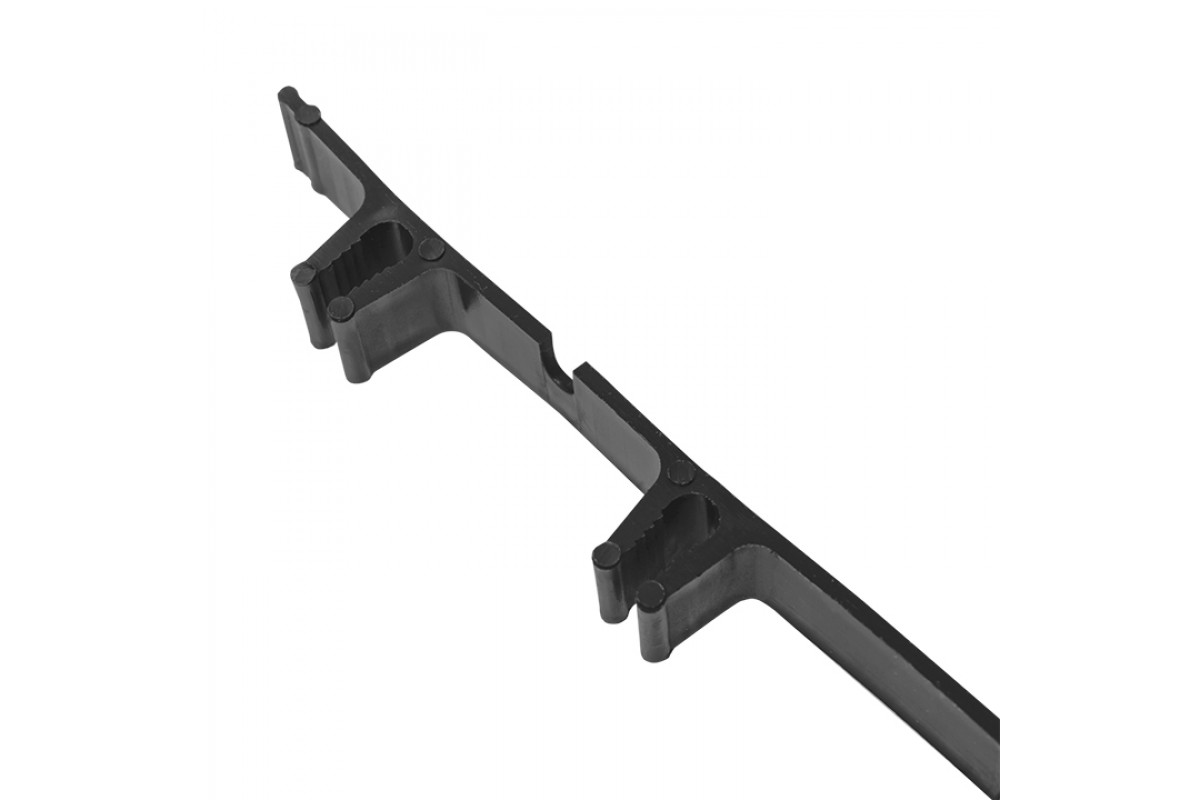 Крепежный зажим КМ/У1-6 используется для крепления нагревательного кабеля на плоской кровле с максимальным уклоном до 25°, а также открытых площадках и резервуарах. Зажимы стыкуются между собой при помощи стыковочных пазов и шипов, крепятся к поверхности при помощи специального клея или дюбель-гвоздей, после чего нагревательный кабель закрепляется в специальных проушинах. На внутренней поверхности проушин имеются борозды, которые обеспечивают надежную фиксацию кабеля. Рекомендуемое расстояние между зажимами 500 мм.