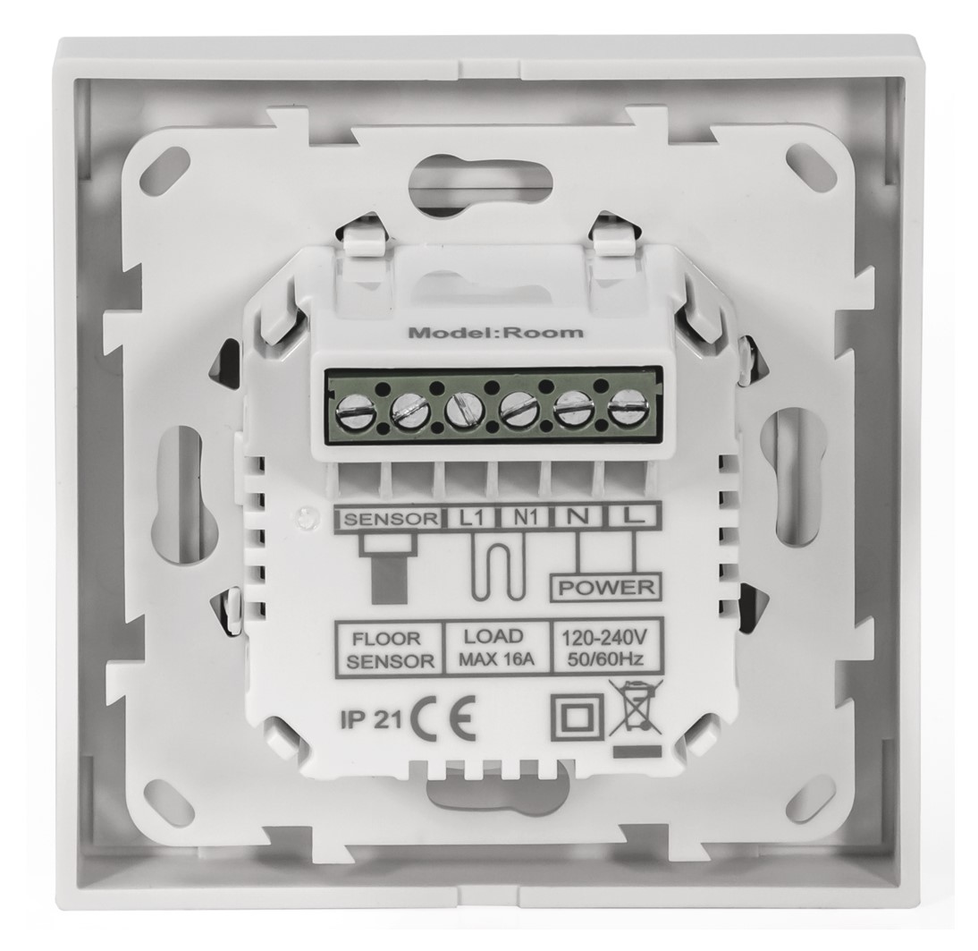 ДЕВИ Room – электронный терморегулятор (не программируемый) с датчиком температуры на проводе, предназначенный для управления электрическими системами комфортного подогрева пола. Терморегулятор предназначен только для стационарной установки внутри помещений.